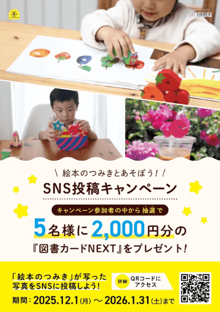 12月1日より、絵本のつみきSNS投稿キャンペーンが行われています😁
